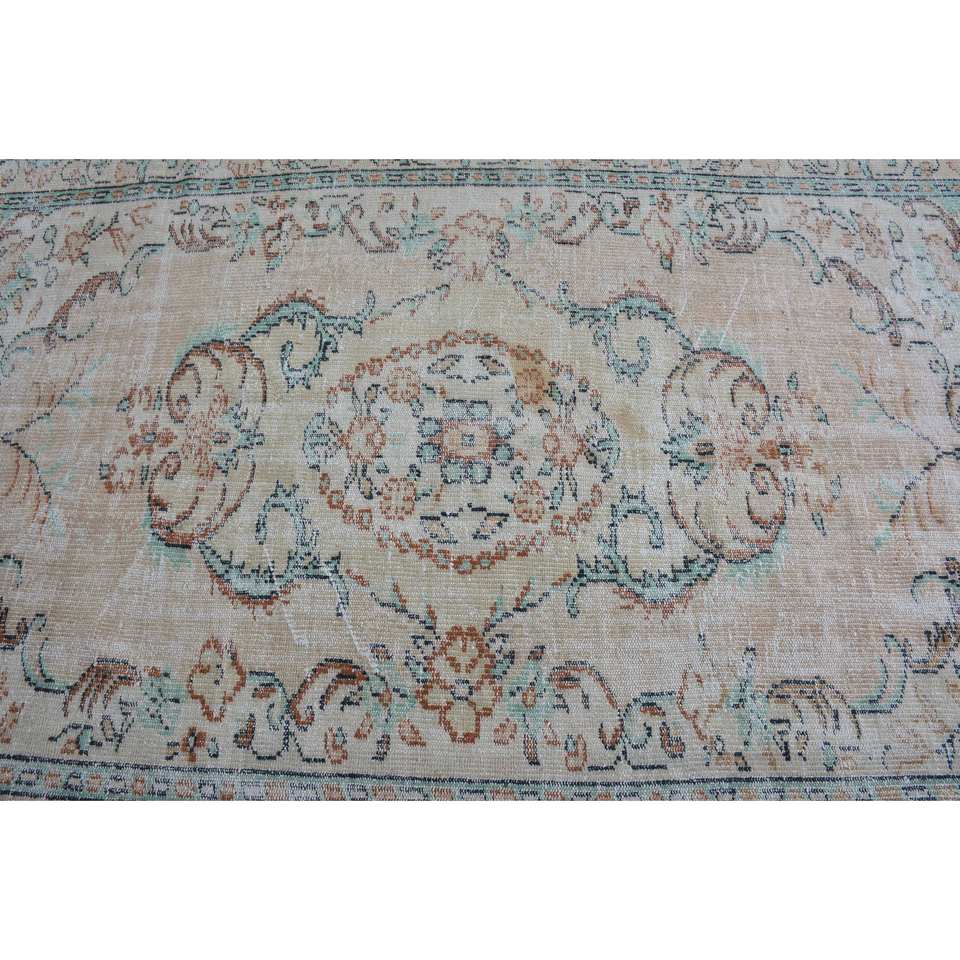 Classic Beige Green Vintage Turkish Rug 5.2 X 8.3 ft Large Area Patchwork Wool with Latex Backing for Hallway or Bedroom