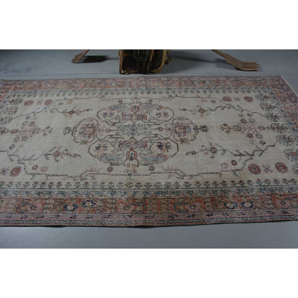 Classic Beige Pink Vintage Turkish Rug 5.4 X 10.2 ft Wool Patchwork Pattern for Teen Living Room Latex Rectangle Striped Hallway