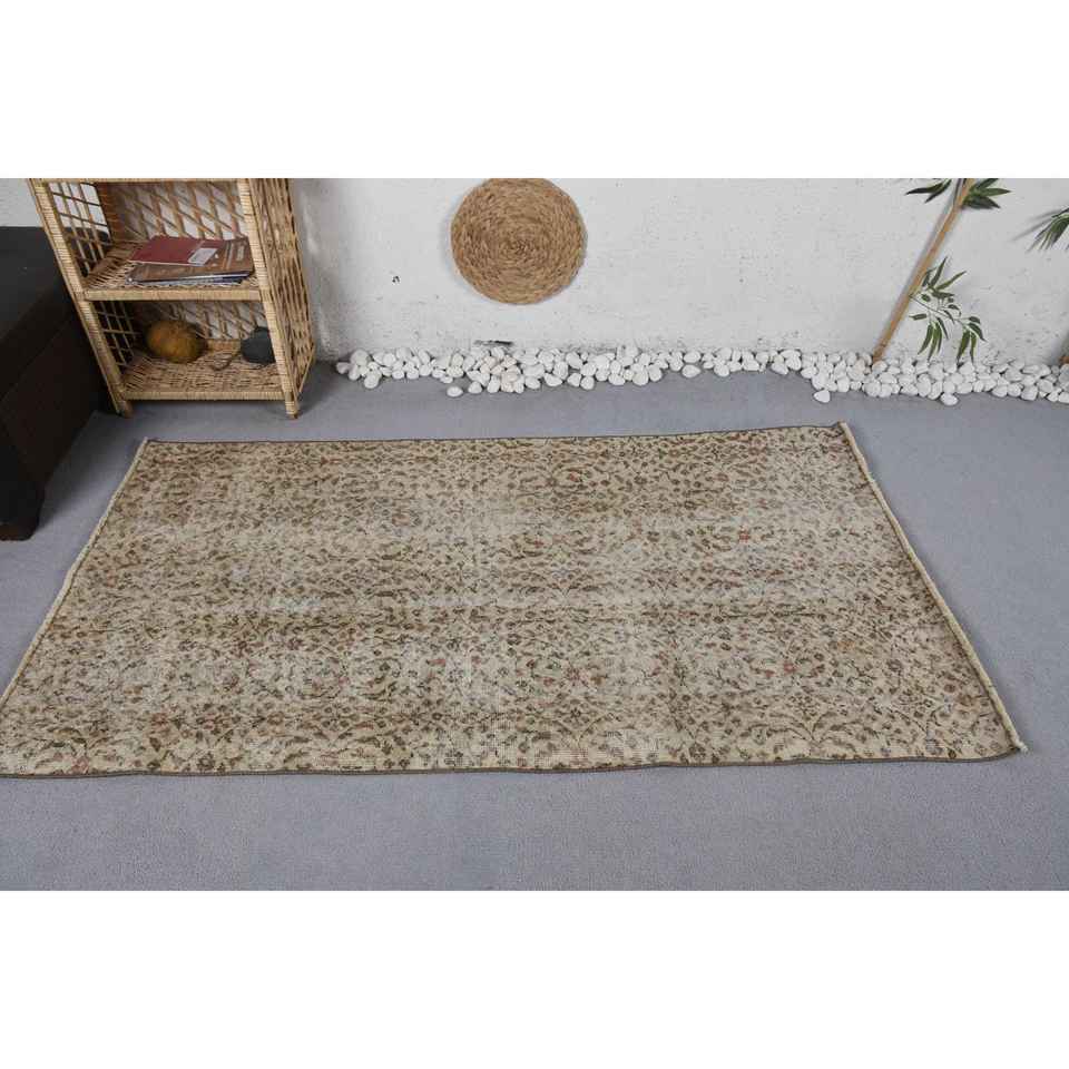 Classic Beige Red Large Area Turkish Floral Wool Rug 3.3 X 6.1ft 10mm Abstract Rectangular Shape Latex for Hallway Room