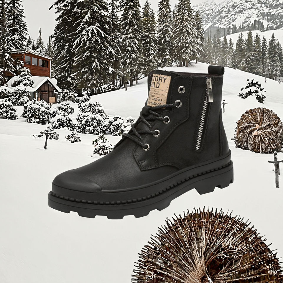 Classic Black Genuine Cowhide Leather Men's Outdoor Winter Boots Comfortable for Autumn & Summer Use