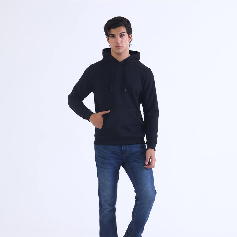 Classic Black Hoodie Unisex Cotton Pullover Custom Logo Sweatshirt Fashionable Winter Wear-100% Cotton with Printed Pattern
