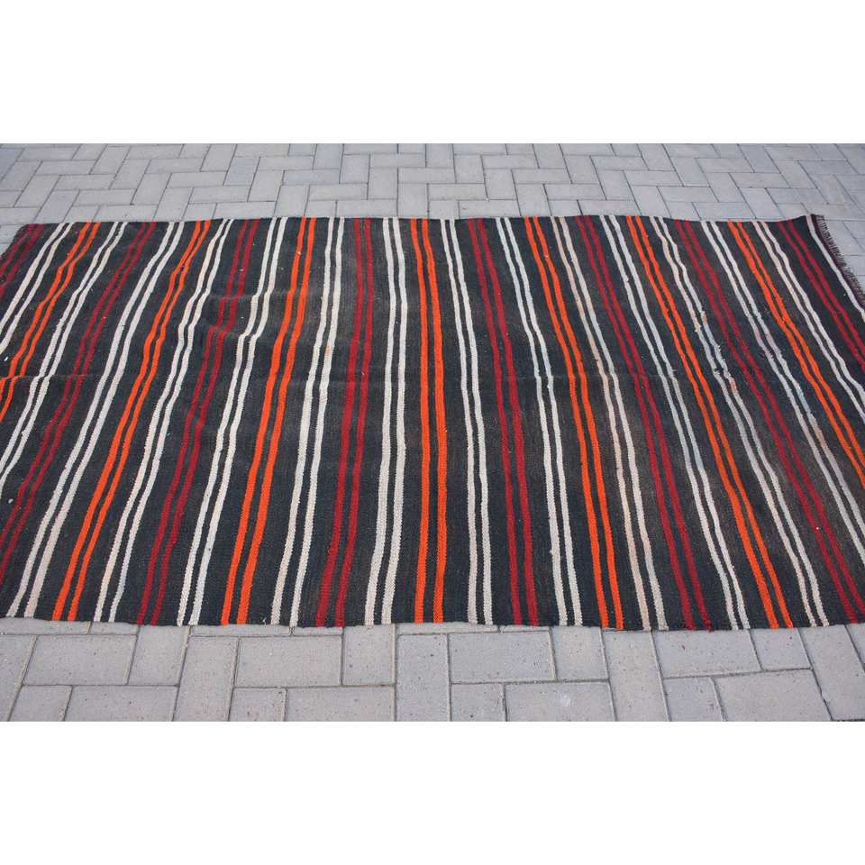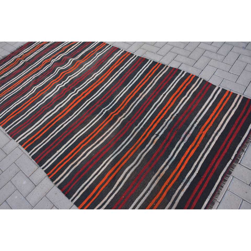 Classic Black Red Vintage Turkish Rug 4.5 X 8.7 ft Large Area Wool with Latex Backing Patchwork Pattern for Hallway or Room