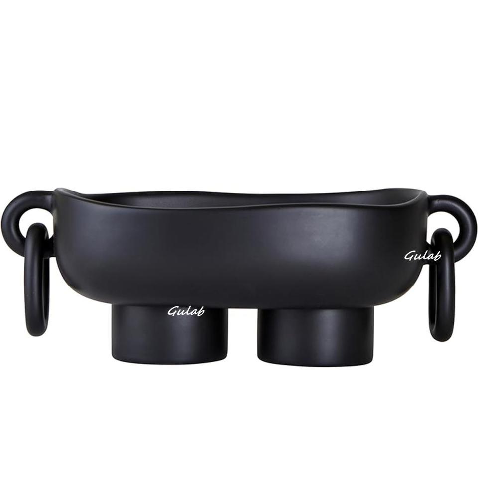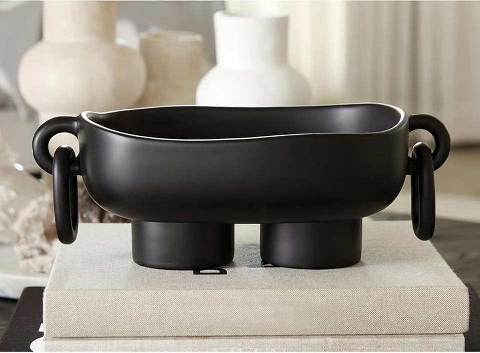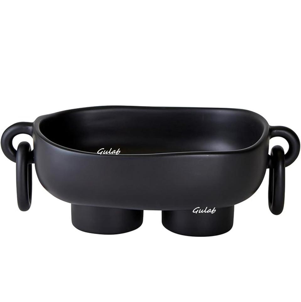 Classic Black Resin Eco-Friendly Fruit Bowl with Dual Handle Design Decorative Multipurpose Serving Bowl Home Kitchen Dining
