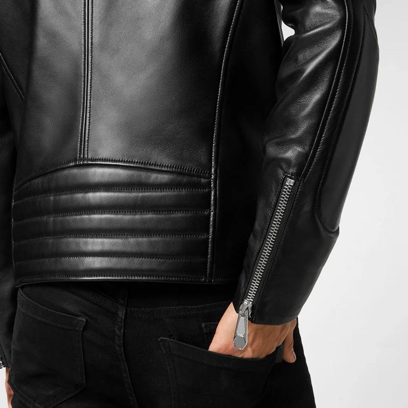 Classic Black Standing Collar Genuine Leather Men's Jacket 2024 Autumn/winter Fashion Motorcycle Custom Sheepskin Short Coats
