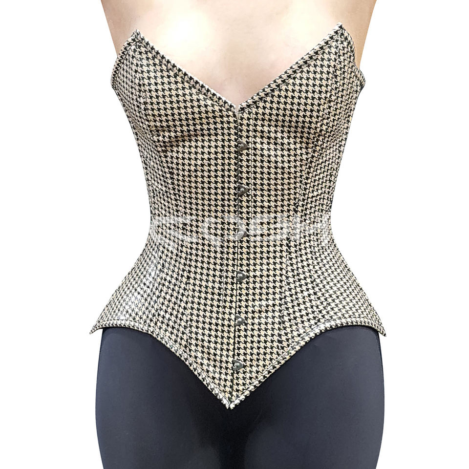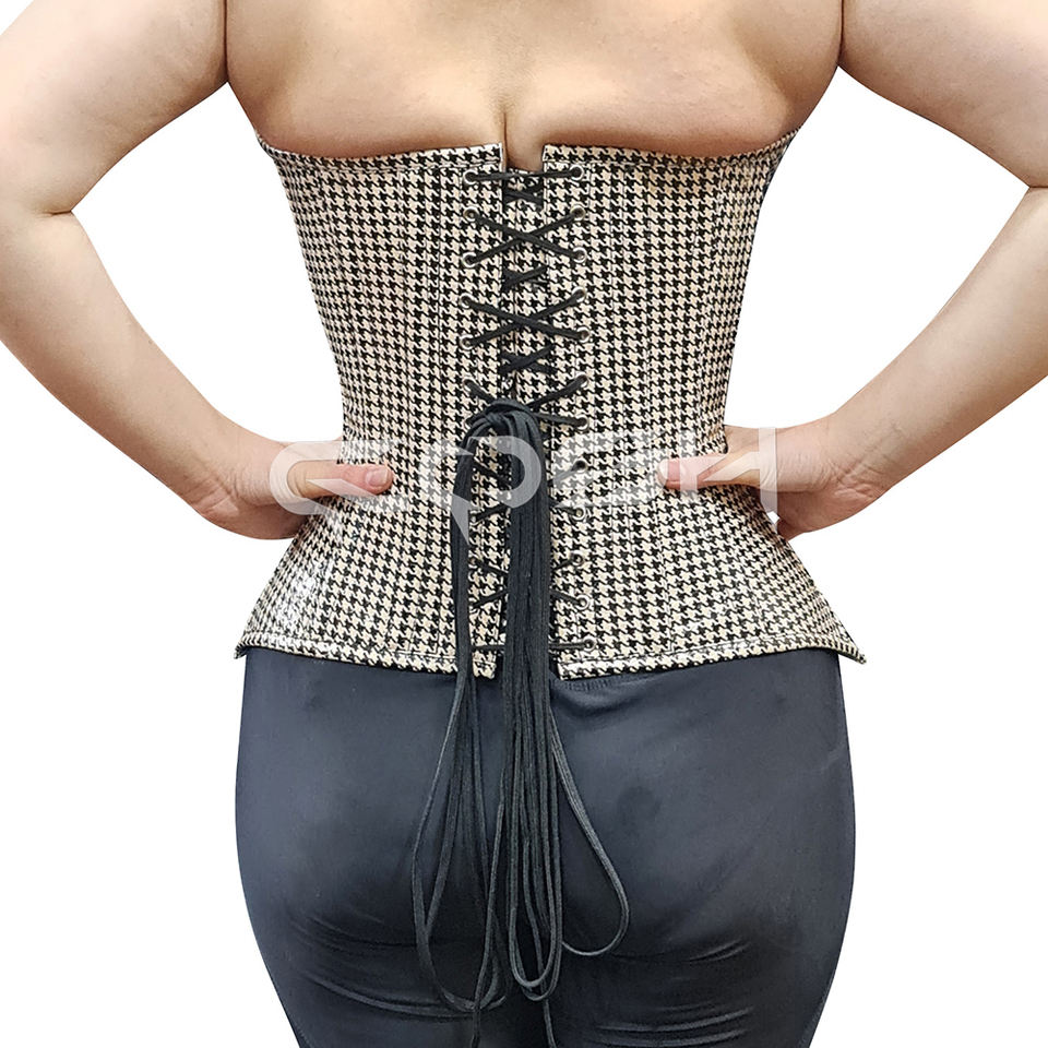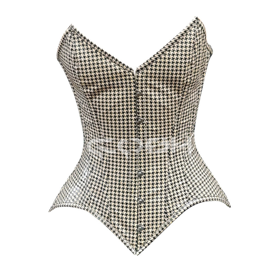 Classic Black & White Houndstooth PVC Overbust Steel Boned Corset for Party & Fashion Wear