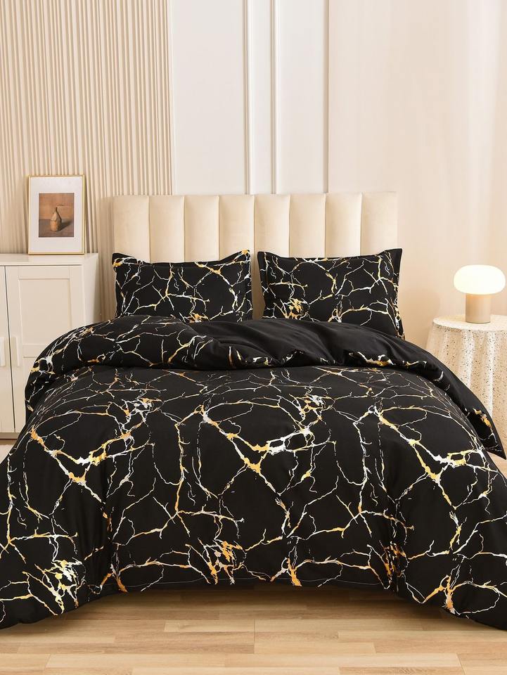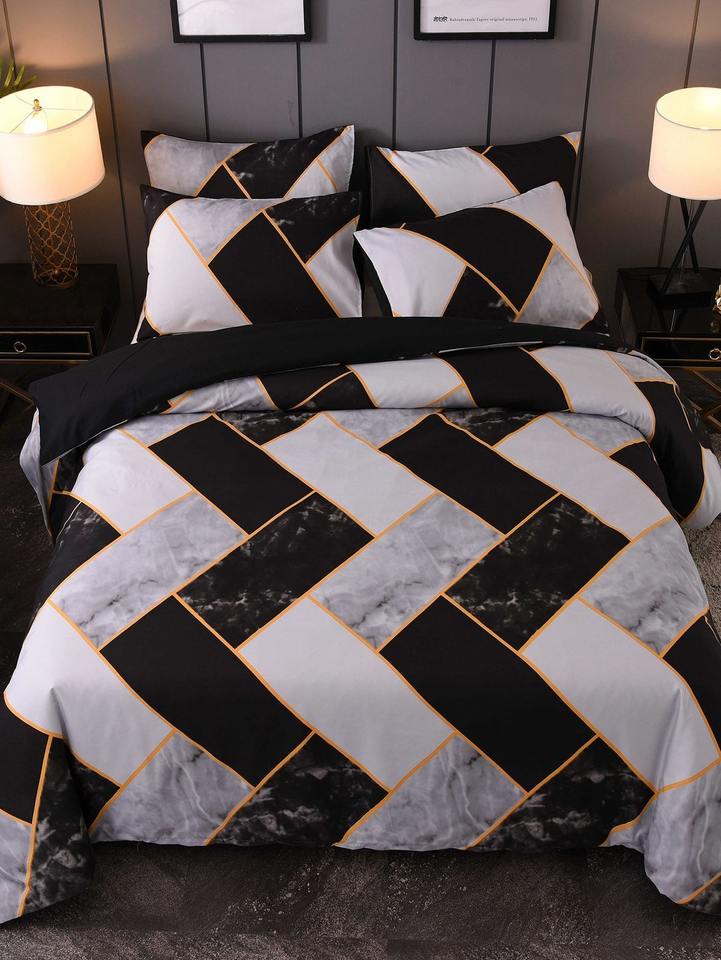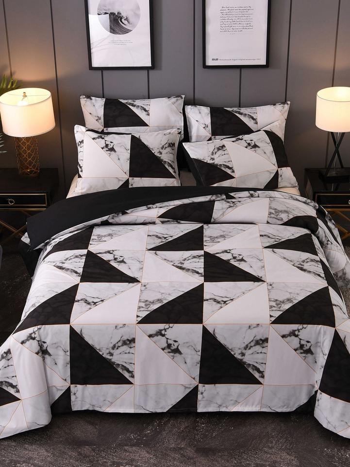 Classic Black and White Marble Patchwork Luxury Bedding 100% Polyester Stylish Florals Stitching 400TC Set