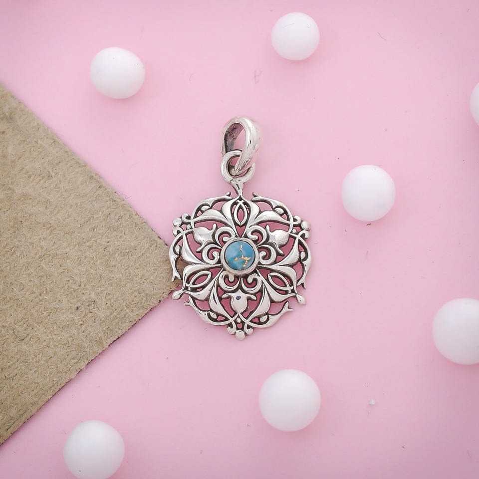 Classic Blue Copper Turquoise Gemstone 925 Sterling Silver Unique Design Handmade Pendant Jewelry Jewellery Manufacturer