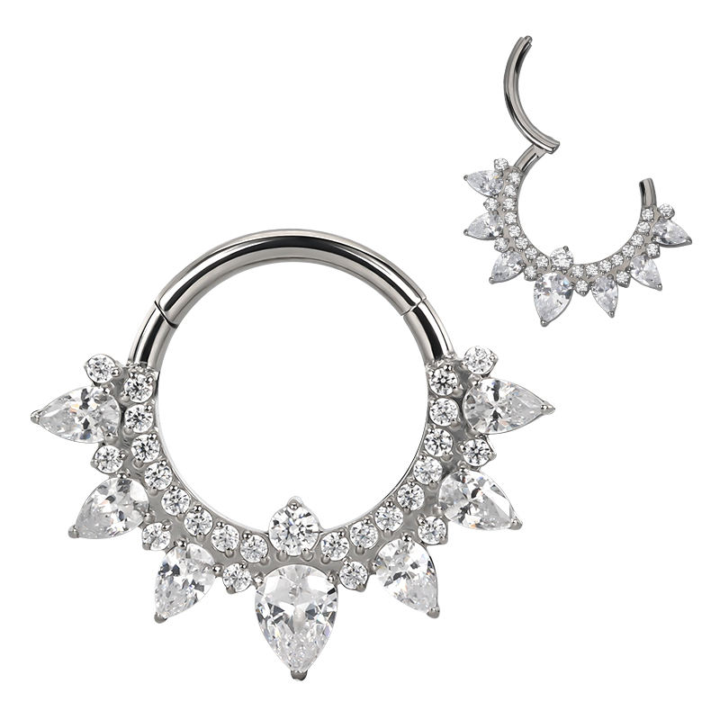 Classic G23 Titanium Segment Ring Forward Facing Pave CZ Front Hinged 7 Pear CZ Setting Children's Nose Piercings Punk Style