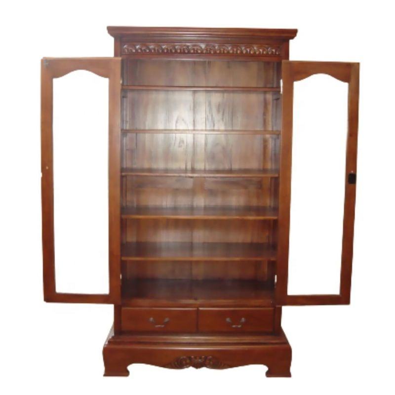 Classic Bookcase Antique Showcase Mahogany Display Cabinet in Wood Stain Color for Furnishing Office Furniture and Home Office