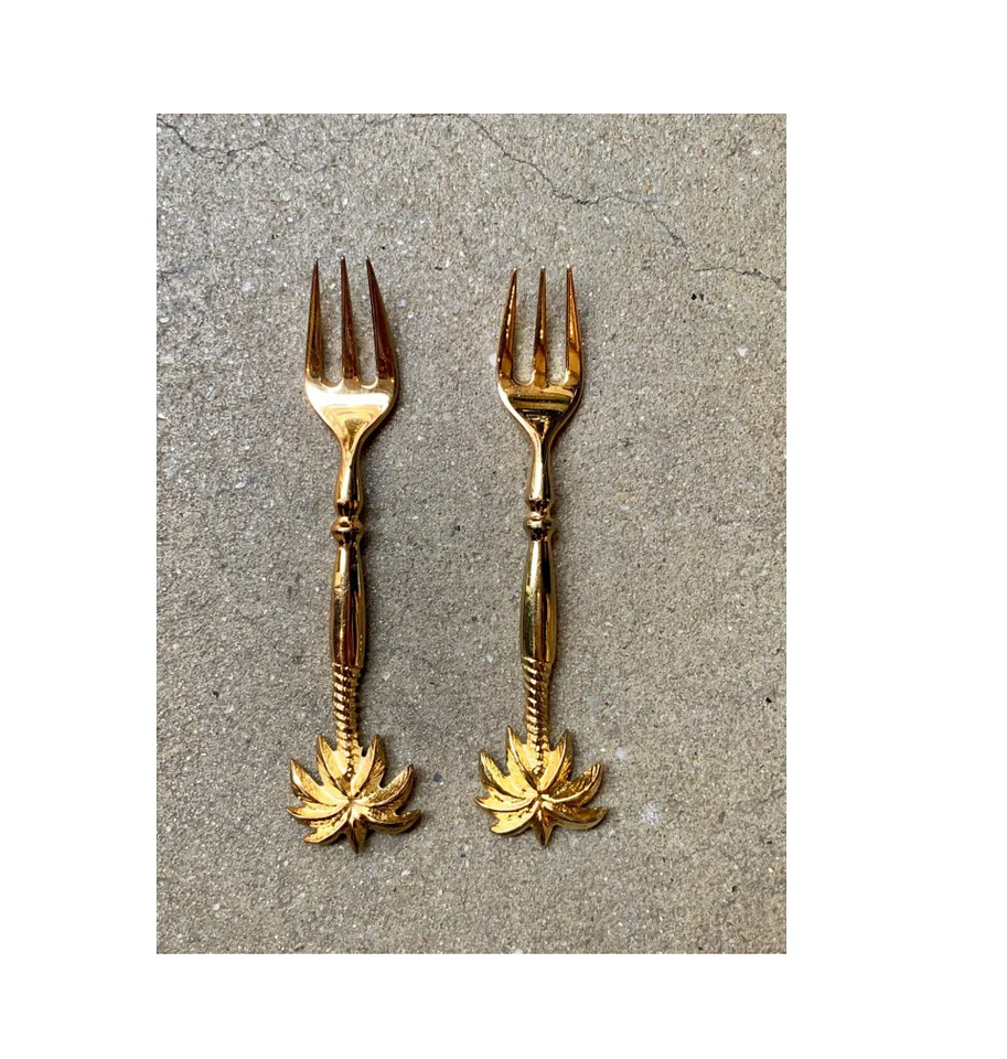 Classic Brass Fork Gold Polished Twisted And Palm Tree Shape flatware royal gifts brass dessert fork