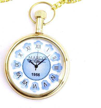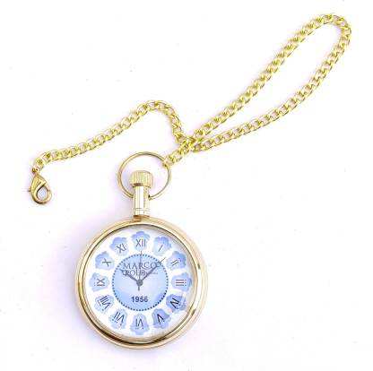 Classic Brass Handicraft Pocket Watch with Chain Royal Look CHLW026 Handmade Glass Novelty Gift for Christmas and New Year