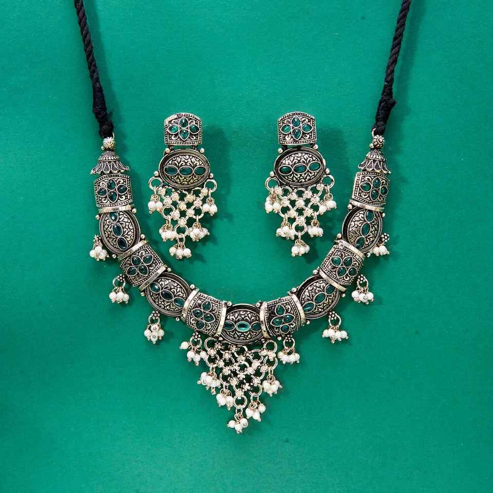 Classic Brass Oxidised Plated Women's Jewelry Set with Crystal & Rhinestone for Wedding/Anniversary Gift
