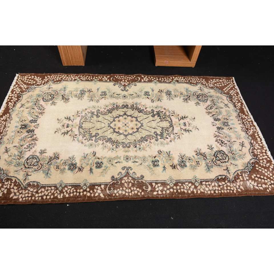 Classic Brown Beige 3.8 X 6.5ft Wool Rug Turkish Patchwork Design for Entryway Living Room or Bedroom Latex Backing