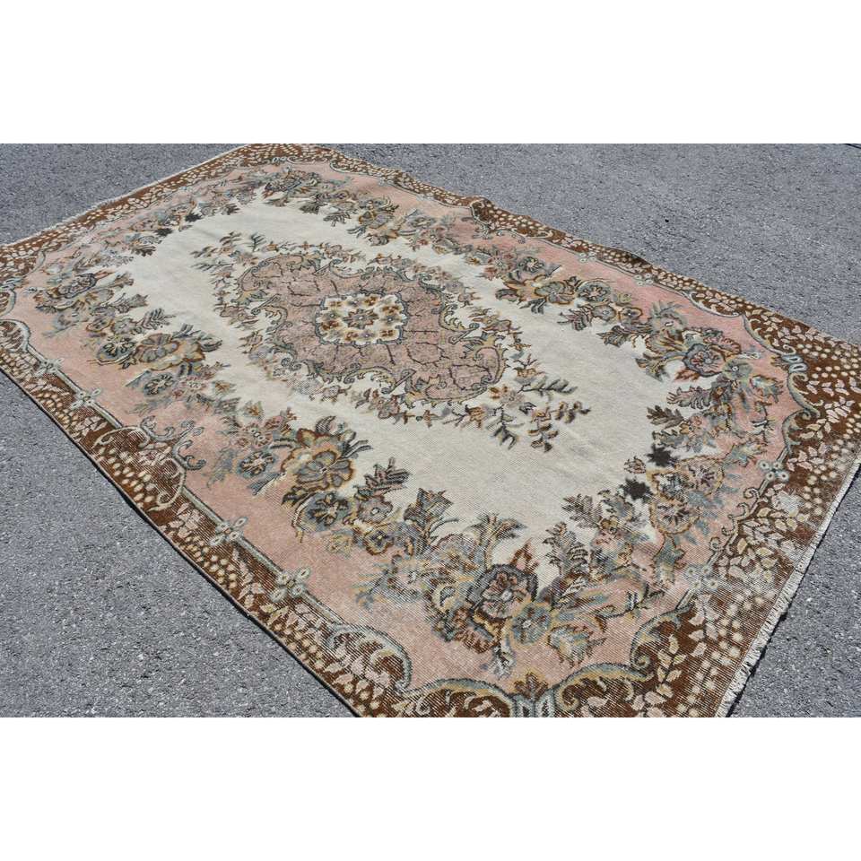 Classic Brown Beige Handmade Turkish Rug 5x9.5ft Rectangular Hallway/Entryway/Bedside for Home Living Room