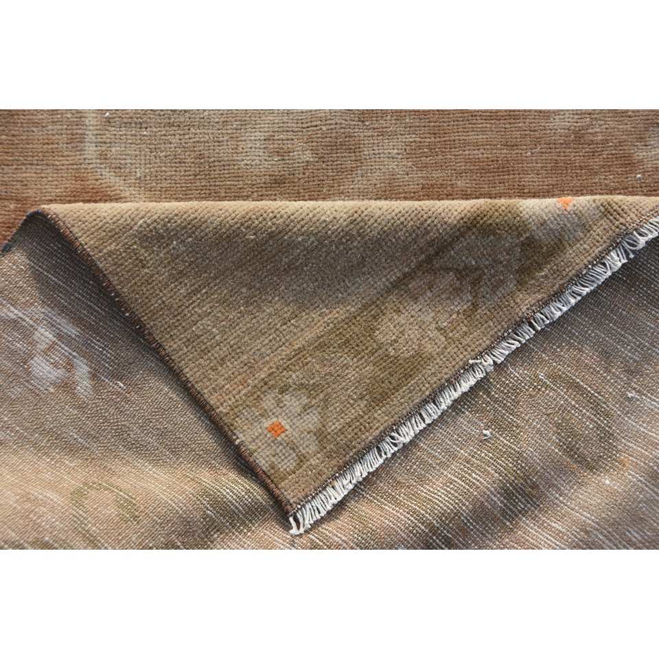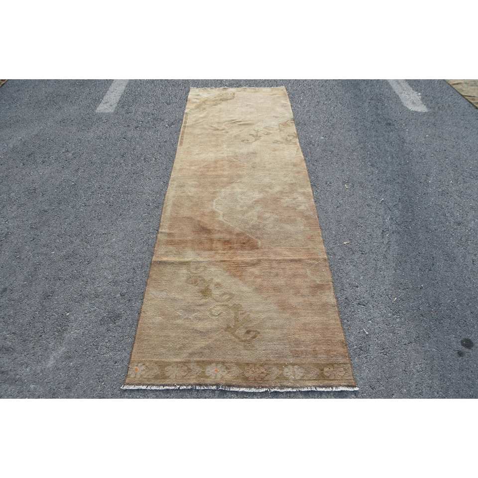 Classic Brown Beige Patchwork Wool Rug 2.7 X 8.7ft Turkish Design for Entryway Living Room Bedroom Latex Backed Side Table Size