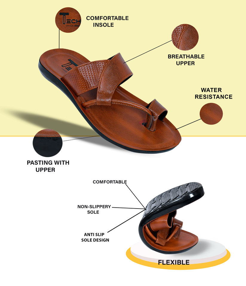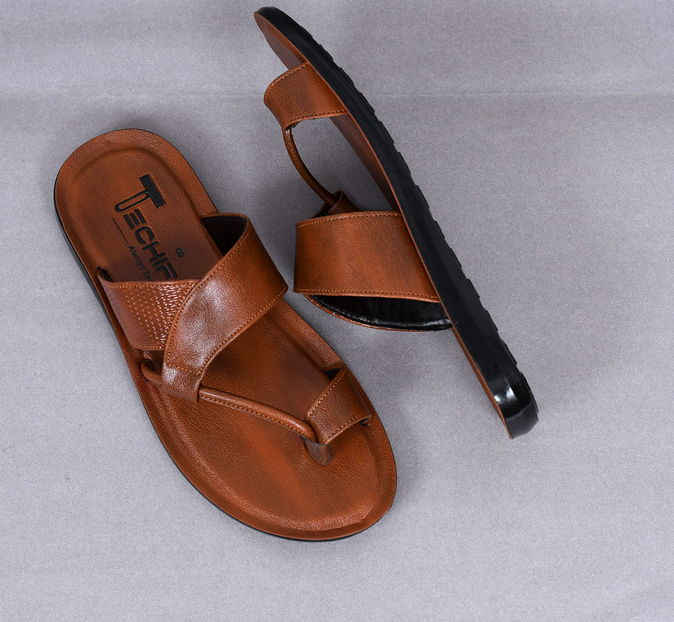 Classic Brown Leather Toe Ring Sandals for Men Durable Handmade Slip On Flats for Daily Casual and Traditional Outfits