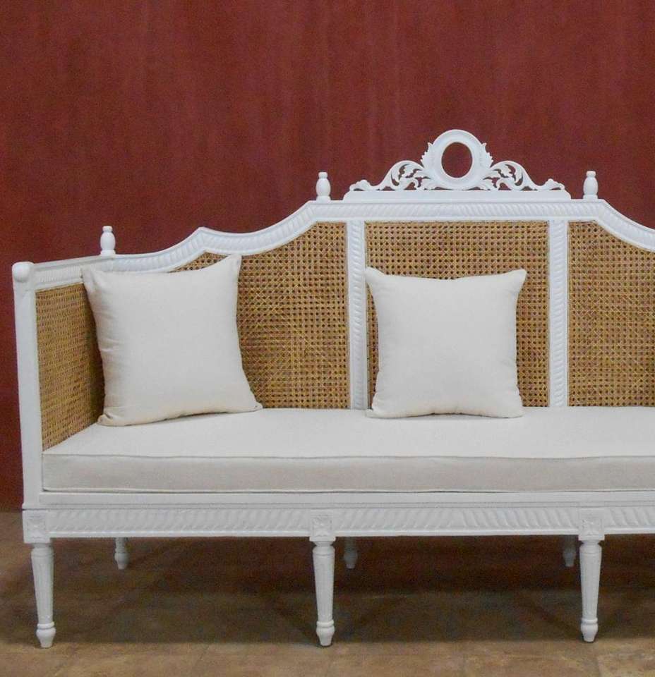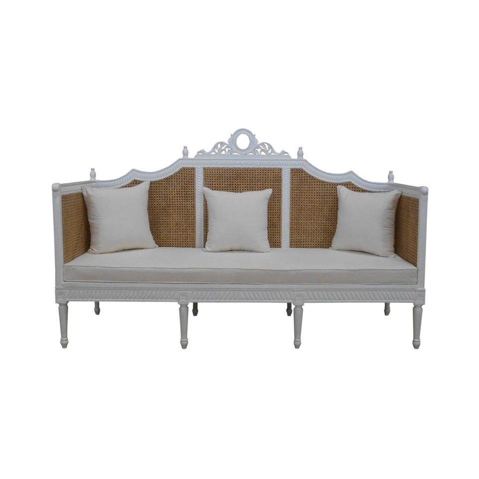 French Sofa Bench:White Rattan Carved Sofa