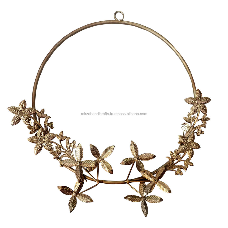 Classic Christmas Wreath High Golden Flower Leaf Front Door Wall Window Garden Areas Party Decorations-Wrought Ironn for Home
