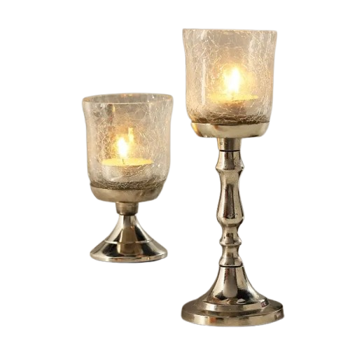 Classic Chrome Finish T Light Holder With Metal Body and Glass Pit Top for Wedding and Party Decor With Sizes of 10x32 Inches