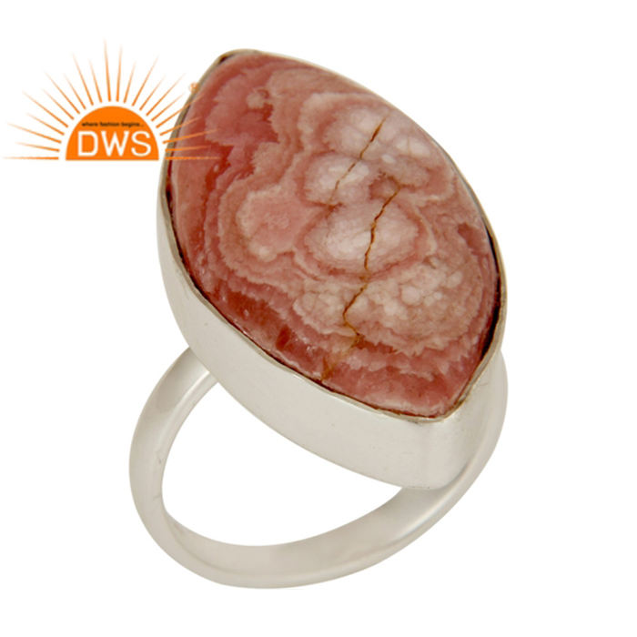 Classic Collection Rhodochrosite Gemstone Bezel Set Statement Ring Wholesale Sterling Silver Chunky Ring Jewelry