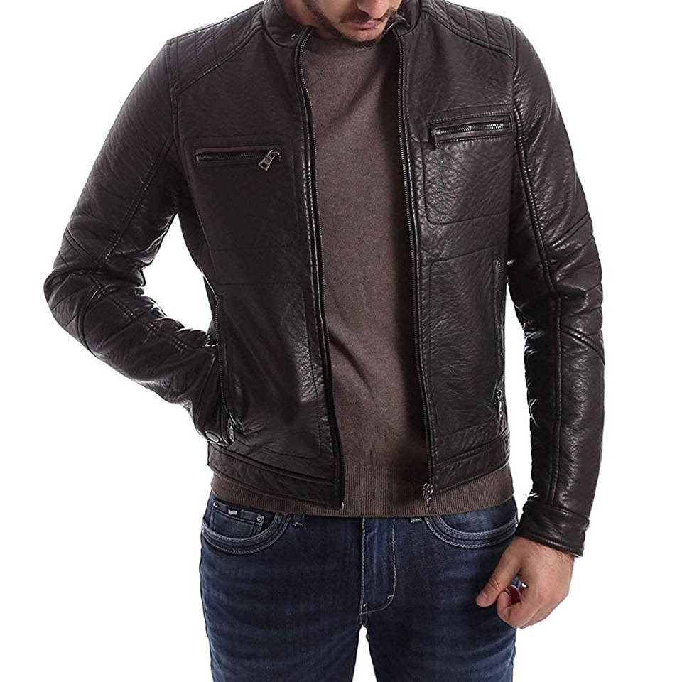 Classic College Style trucker Leather Jackets Men Bomber Wool Fur Collar Leather jacket for men jacket for men