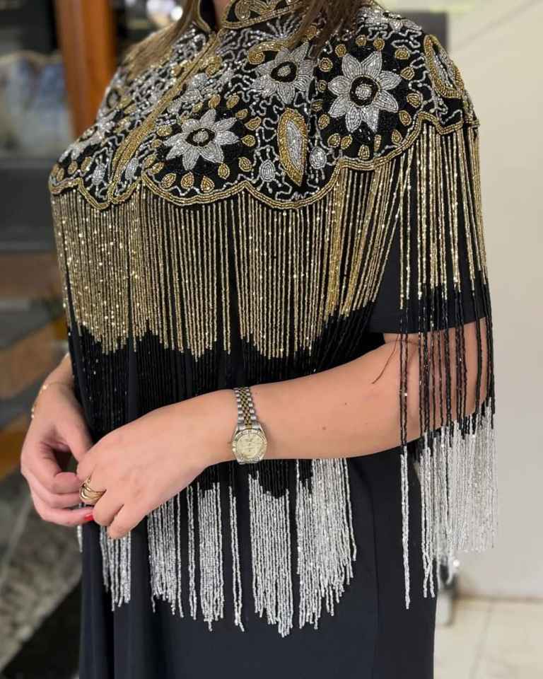 Classic Crystal Diamond Beaded Poncho Style Top for Women Stylish Heavy Embroidery All Seasons