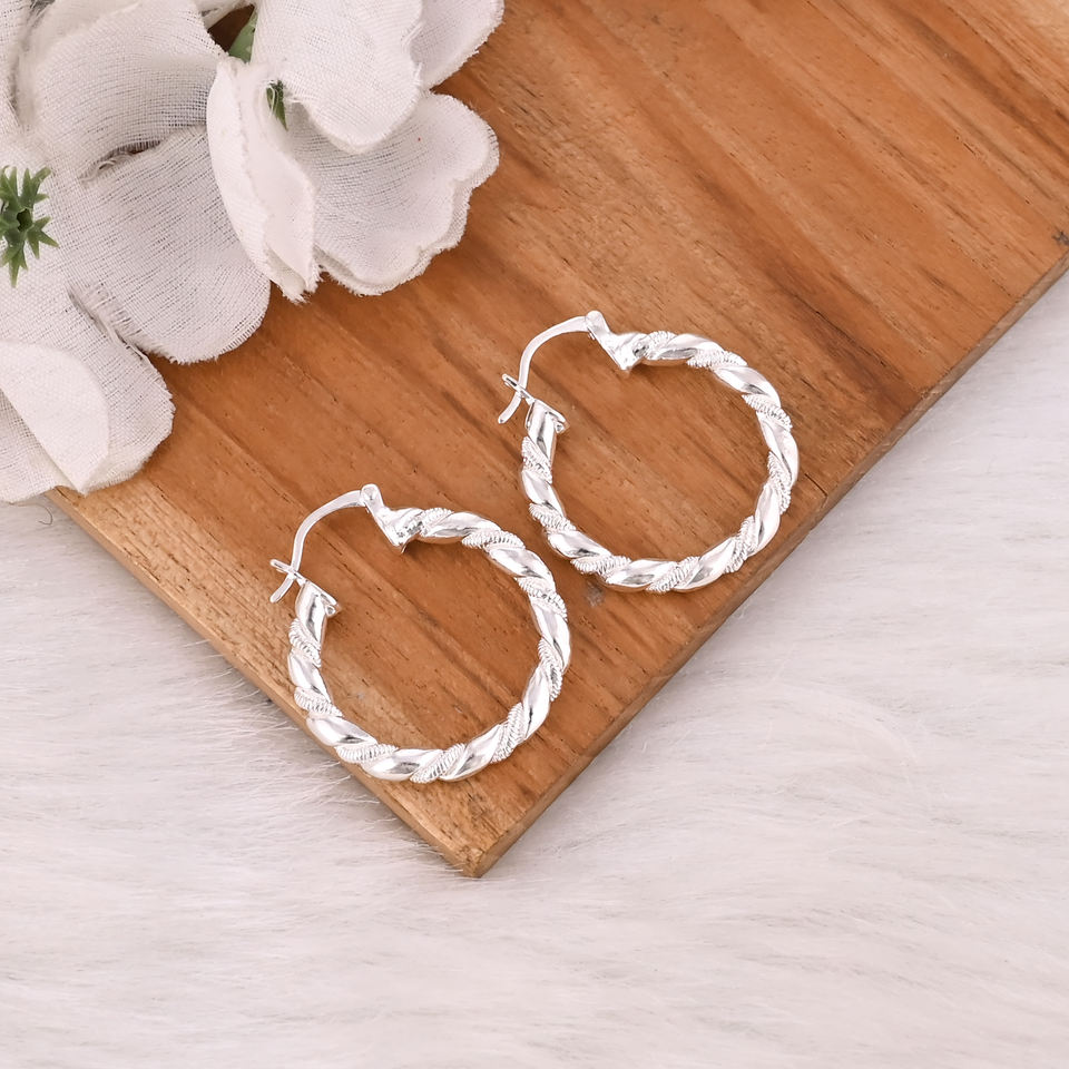 Classic Custom Design 925 Silver Hoop Earring for Girls and Women As College Wear Office Wear and Daily Wear at Wholesale Price