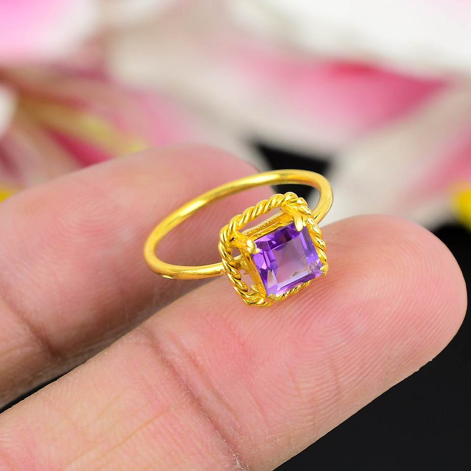 Classic Dainty Gold-Plated Amethyst Midi Ring for Women Trendy Wedding Anniversary Party Gift Dainty Classic Fine