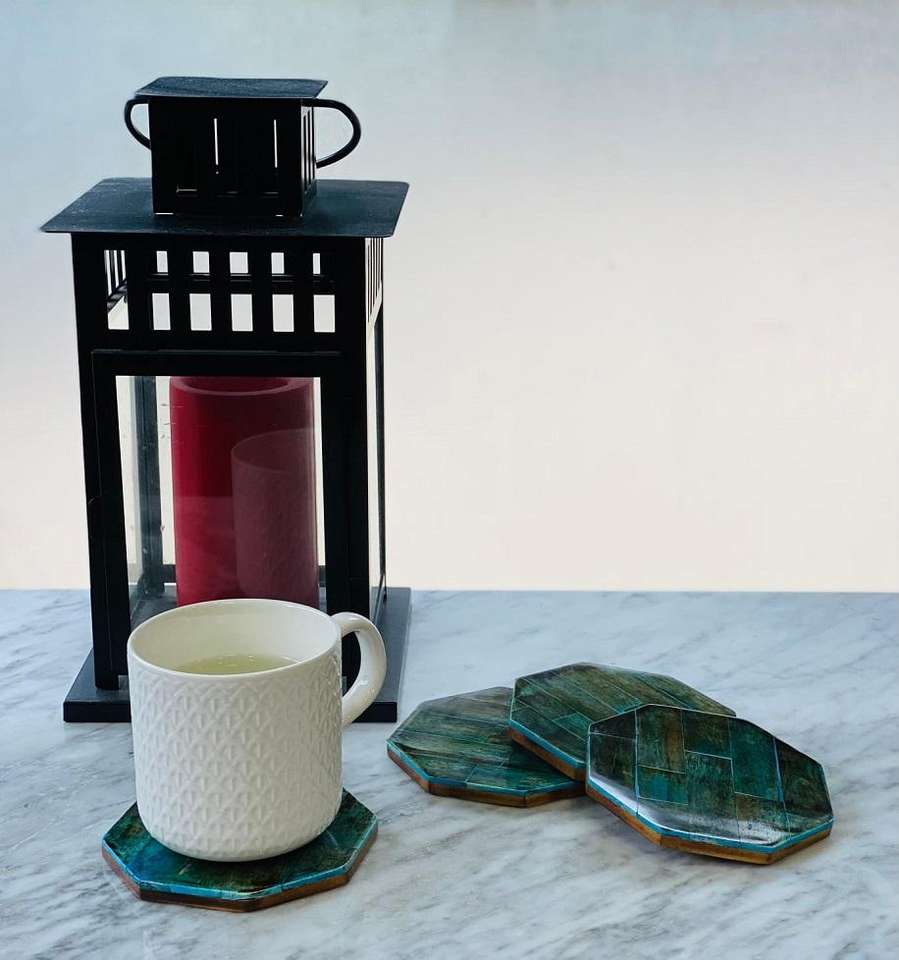 Classic Decorative Handcrafted Bone Inlay Coaster Eco-Friendly 10mm Thick Superior Polish for Refined Home Hotel Table Settings