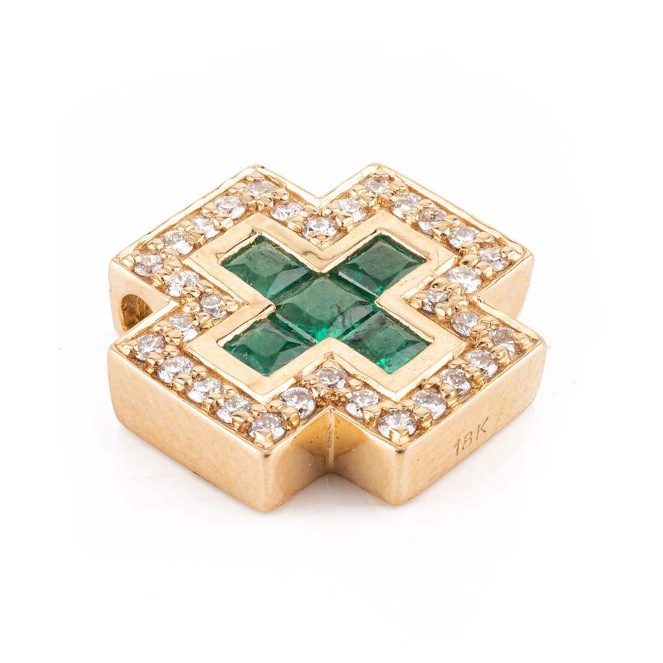 Classic Design 18k Solid Yellow Gold Handmade Collection of Natural Emerald and Diamond Cross Pendant Fine Jewelry for Women