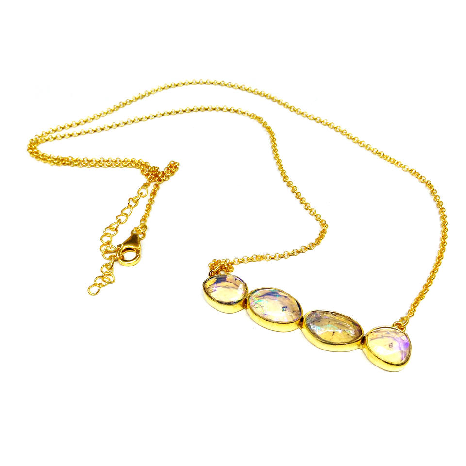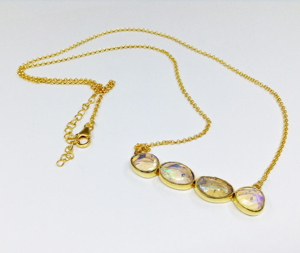 Classic Design 925 Sterling Silver Gold Plated Natural Opal Gemstone Pendant Fashion Jewelry Women Necklaces Party Wear Necklace