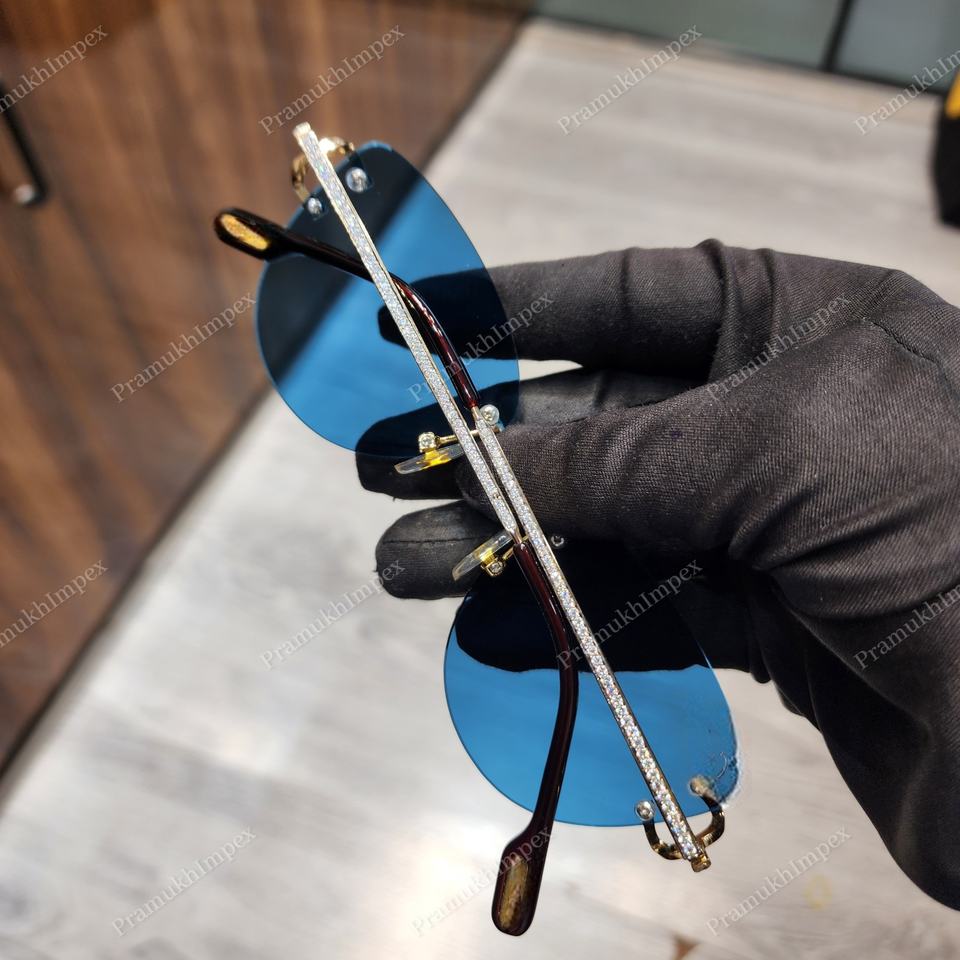 Classic Design Anti-Reflective Iced Blue Lens Moissanite Sunglasses Hip Hop Style Men Women Party Wear Customized Jewelry UV