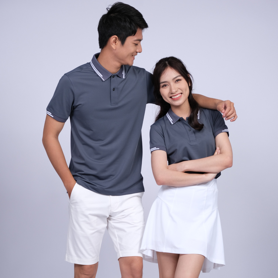 Product Name:Polo Shirt with Contrast Stripes on Knitted Collar & Cuffs