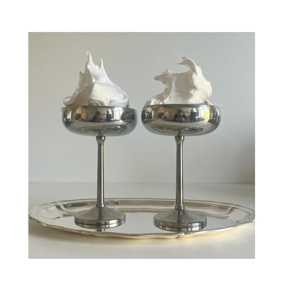 Classic Design Stainless Steel Serving Dessert Ice Cream Cups Mini Glasses Round Footed Ice Cream Cups