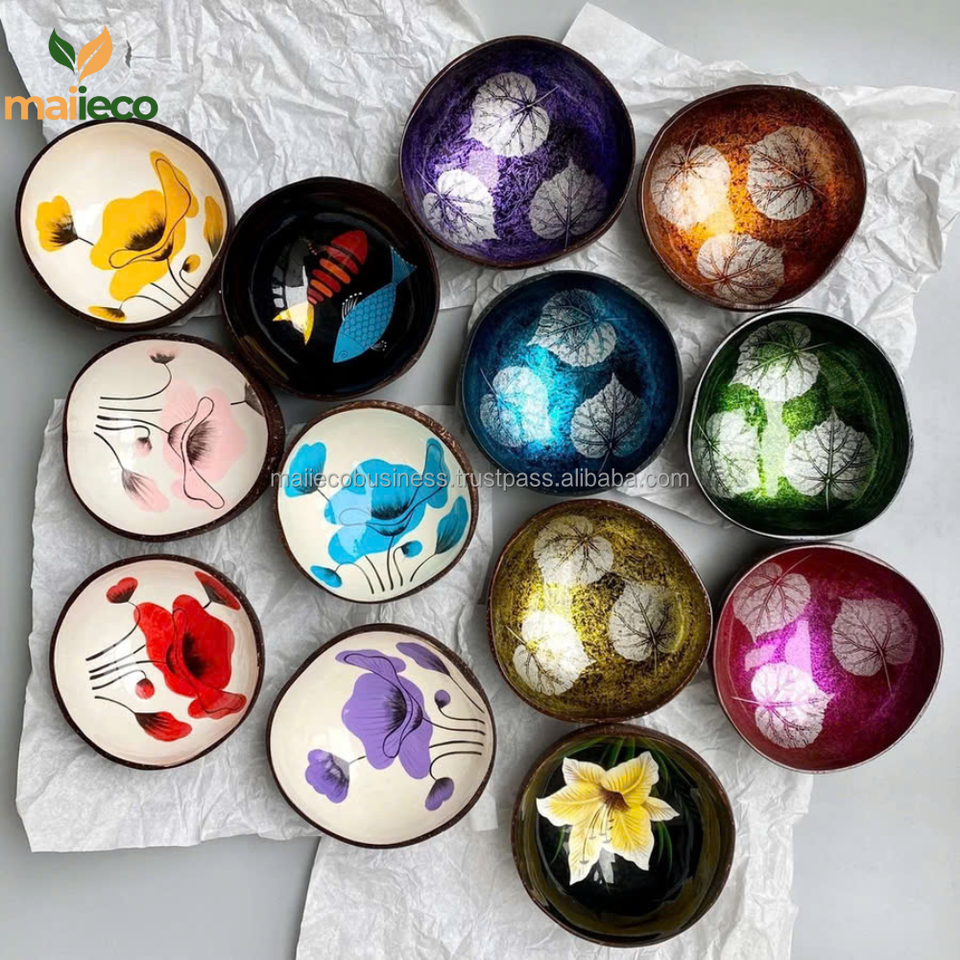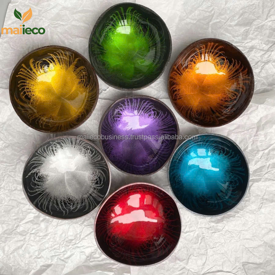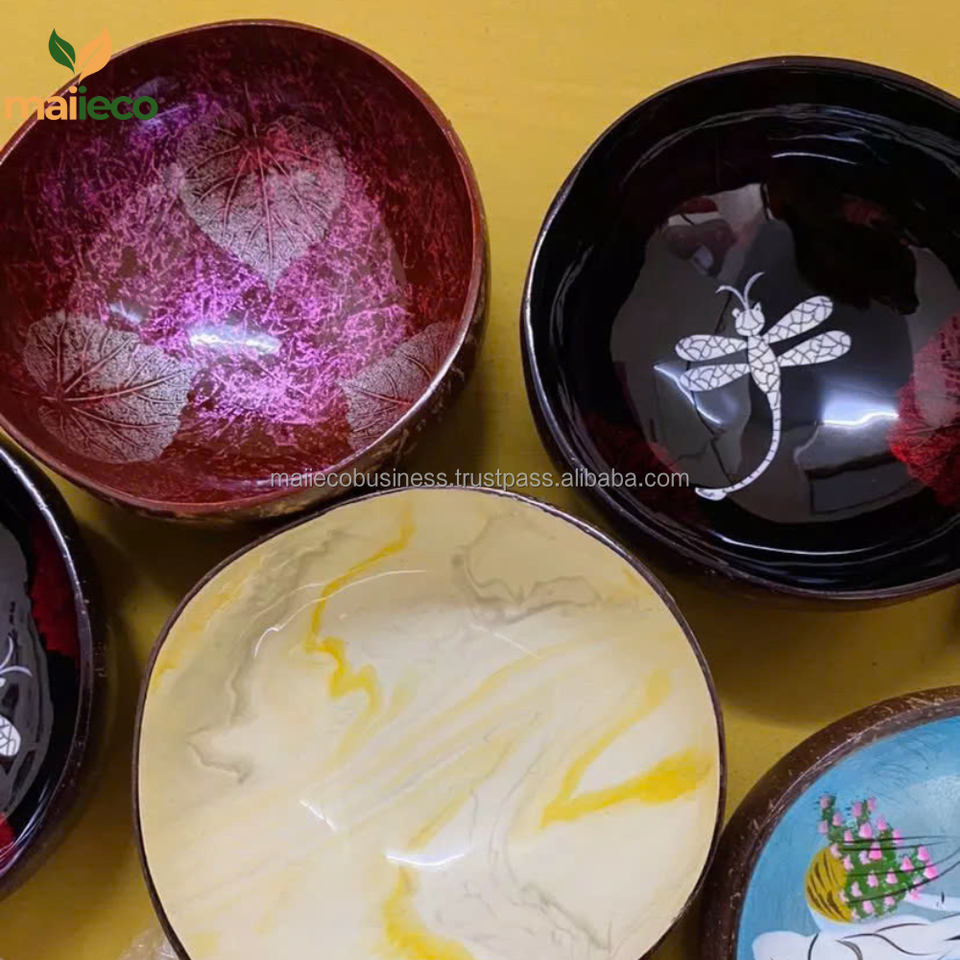 Descriptions:Wholesale Vietnamese Colorful Coconut Lacquer Painting Shell Bowls