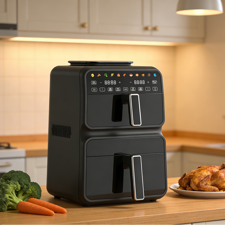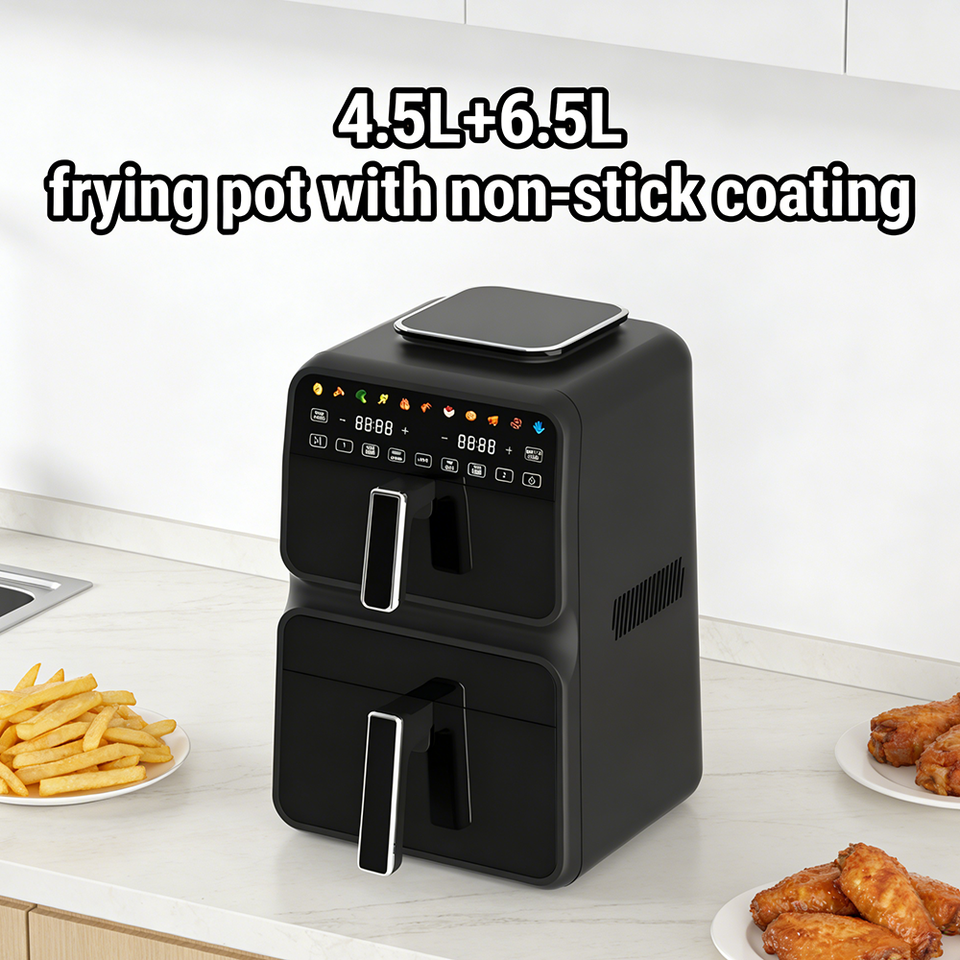 Classic Double Basket Electric Air Fryer 3.1-4.0L Oil-Free Stainless Steel Digital Control Fast Cooking Adjustable Thermostat