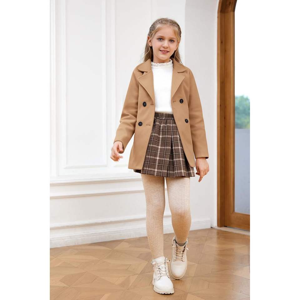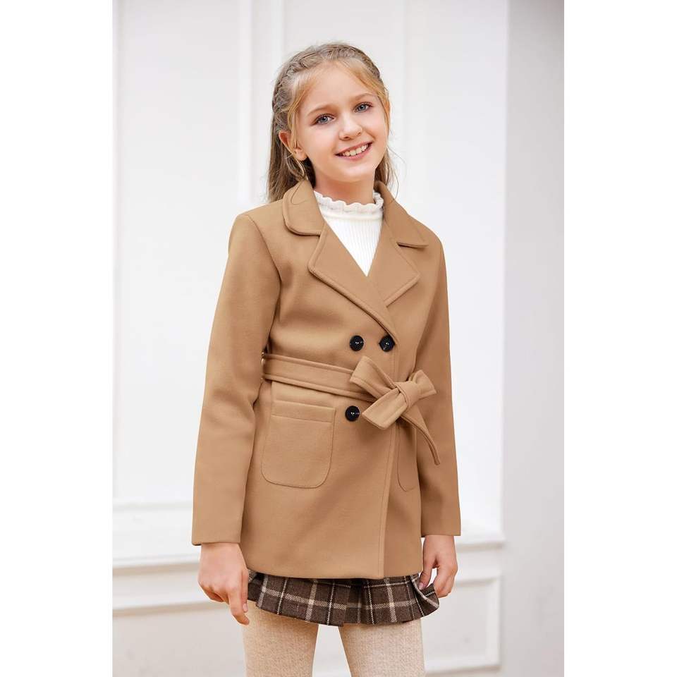 Classic Double-Breasted Winter Trench Coat for Kids Wool Blend Pea Jacket with Belt Winter Outwear for Boys and Girls
