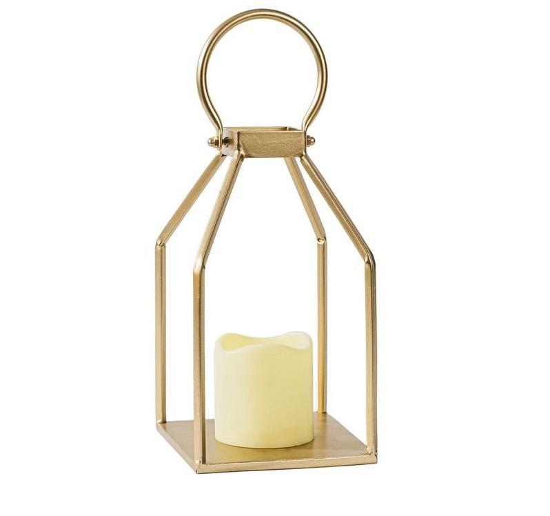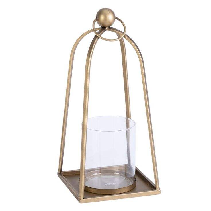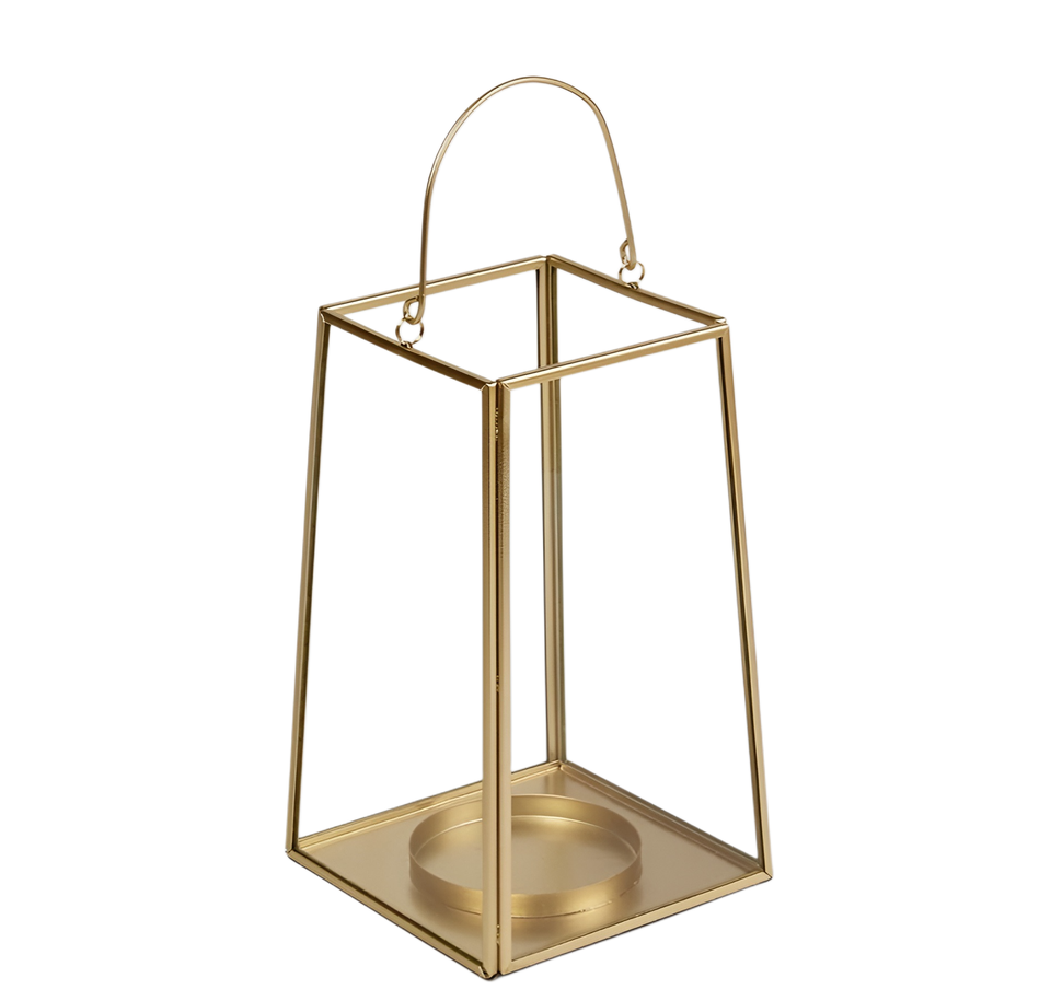 Classic Dynamic Design Square Shape Metal And Glass Candle Lantern Centerpiece for Floor Home & Hotel with Shiny Gold Finished