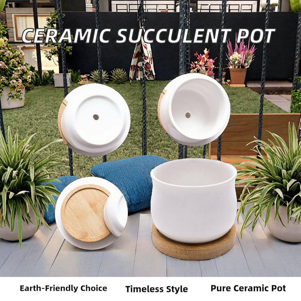 Classic Eco-Friendly Lightweight Porcelain Ceramic Succulent Pot with White Glaze for Home Gardening Planters