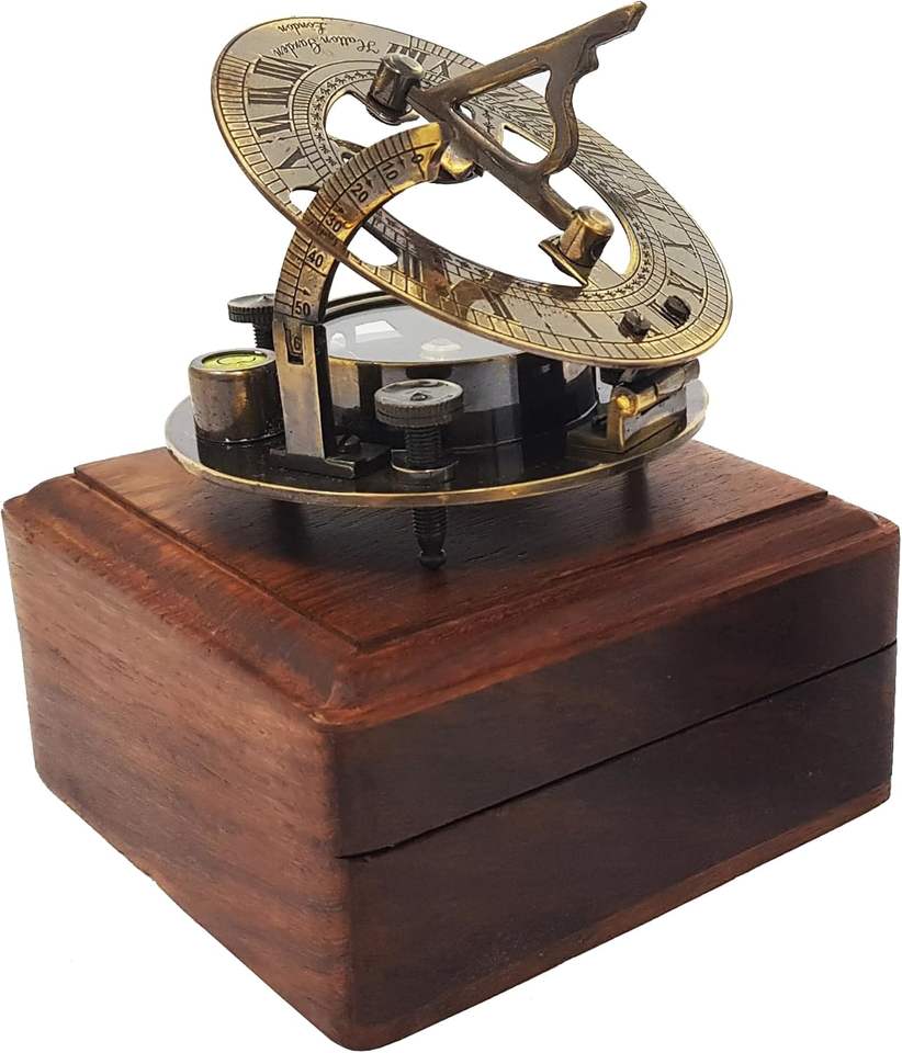Classic Eco-Friendly Sundial Compass Box Metal Nautical Marine Pocket Sun Dial Clock Watch Boat Gift for Pirate Ship Enthusiasts