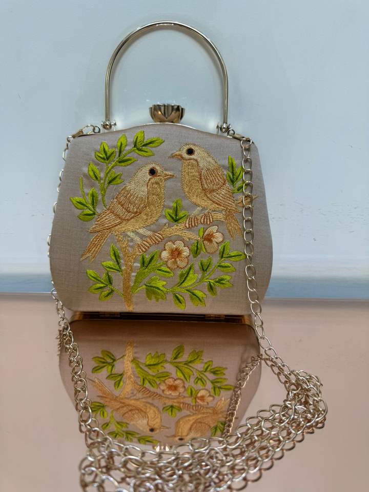 Classic Embroidered Velvet Clutch with Half Moon & Pearl Design Elegant Evening Handbag with Chain Strap