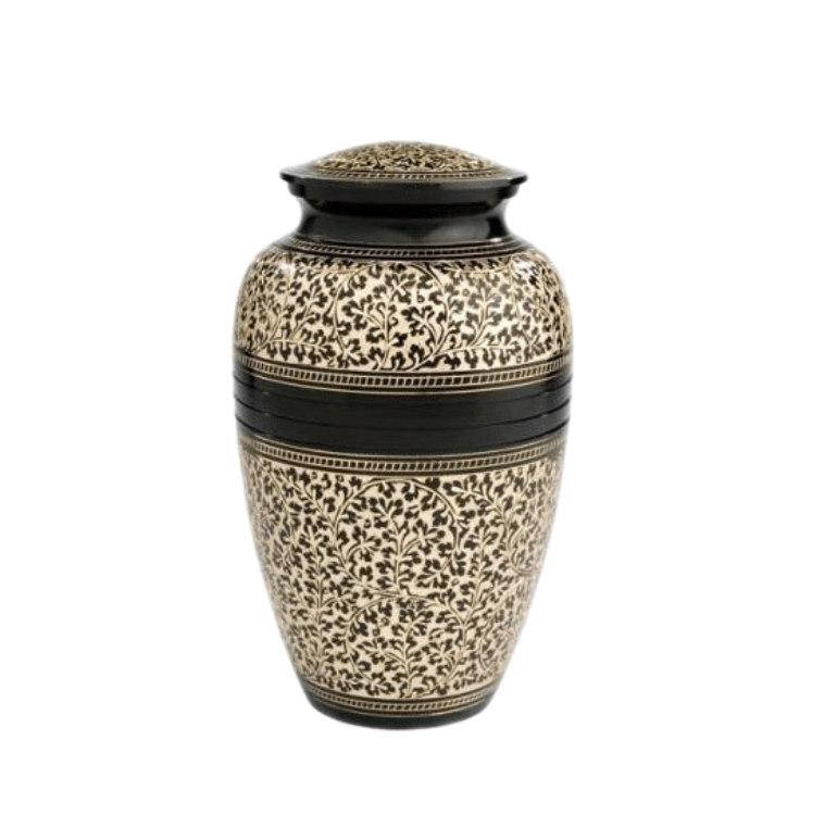 Classic Engraved Adult Urn Green and Gold Decorative Brass Cremation Keepsake for Ashes Memorial Metal Work Urn