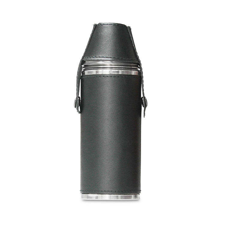 Classic Equestrian Leather Hip Flask Bundle Including Four Polished Stainless Steel Travel Cups For Country Pursuits