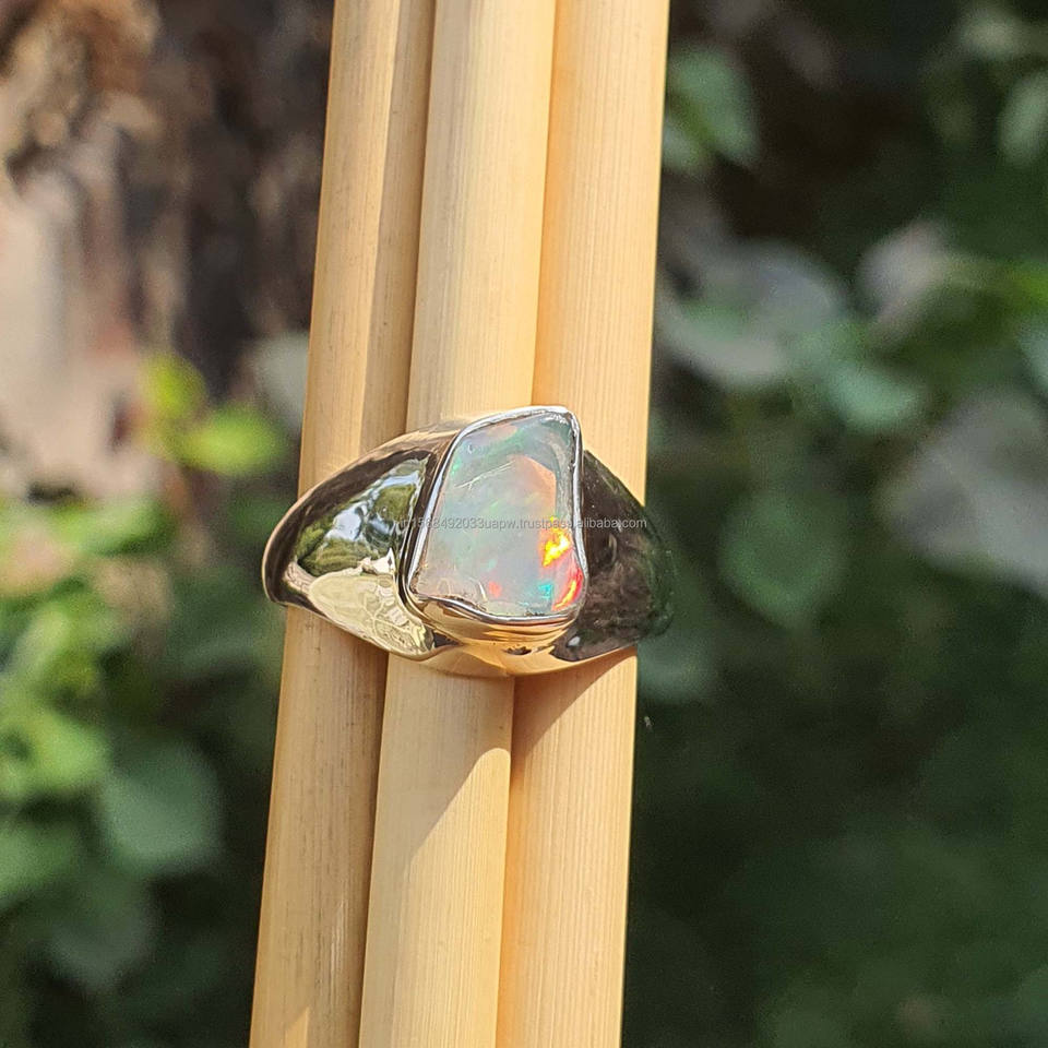 Classic Ethiopian Raw Opal Gold Sterling Silver Wide Band Chunky Engagement Wedding Ring October Birthstone Wholesale Fine