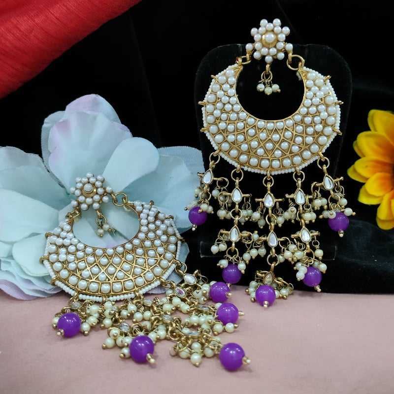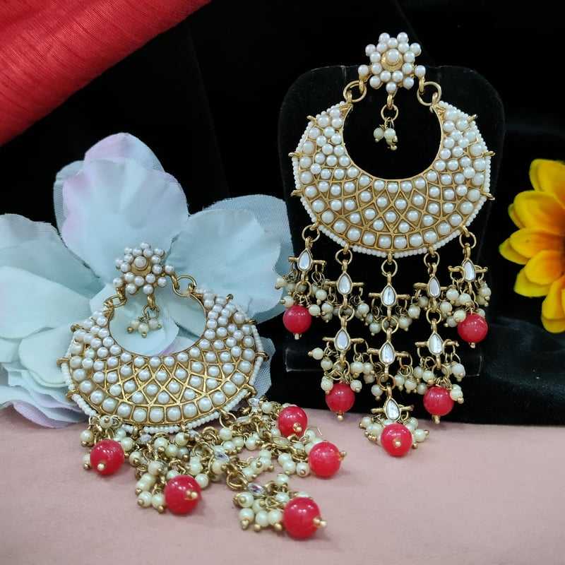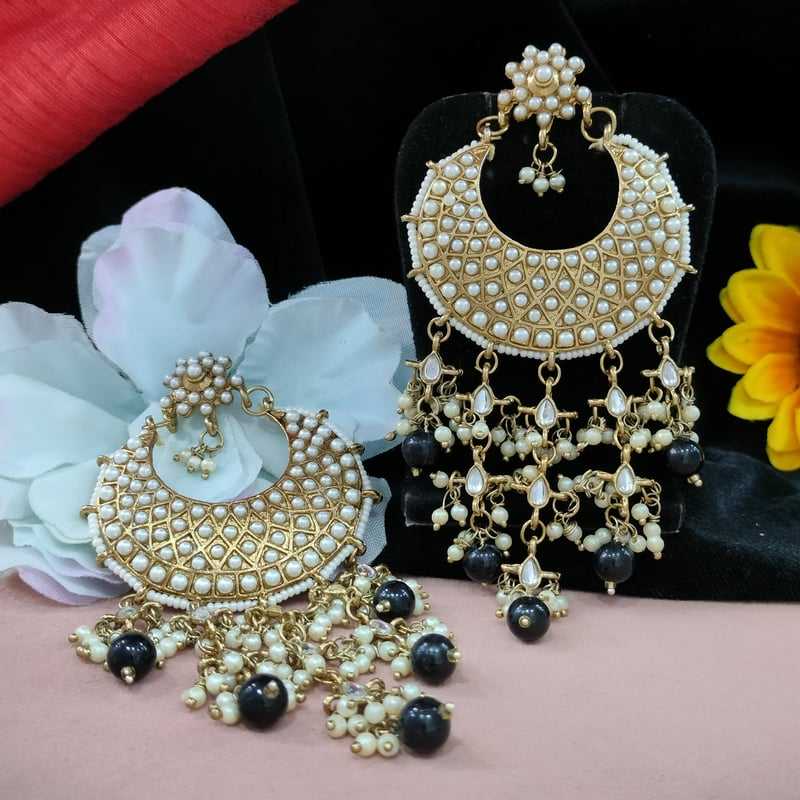 Classic Ethnic Chandbalis Dangle Earrings Pearl-Studded Crescent Moon Shape Fine Detailing Filigree Work for Enhancing Ethnic