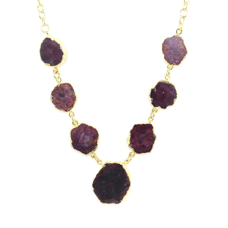 Classic Fashion Raw Ruby Slab Gemstone Fancy Shape 22K Gold Electroplated Necklace Healing Crystal Birthstone Women Jewellery