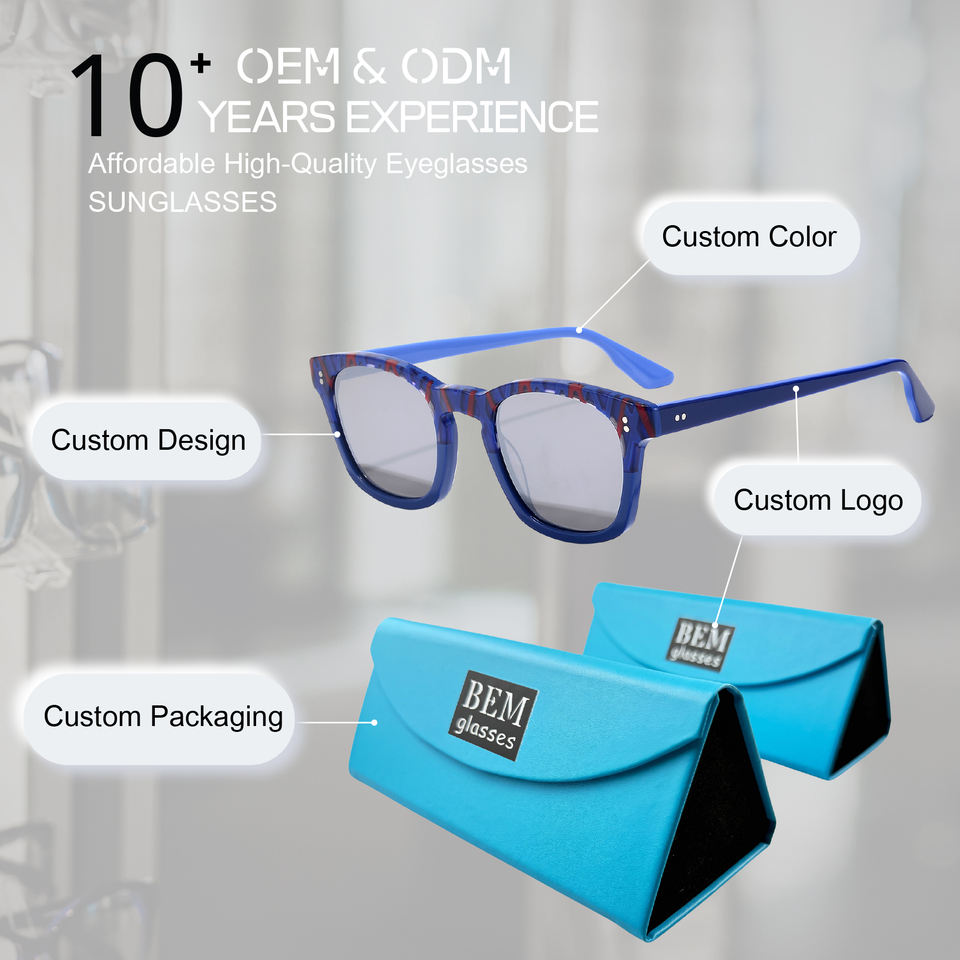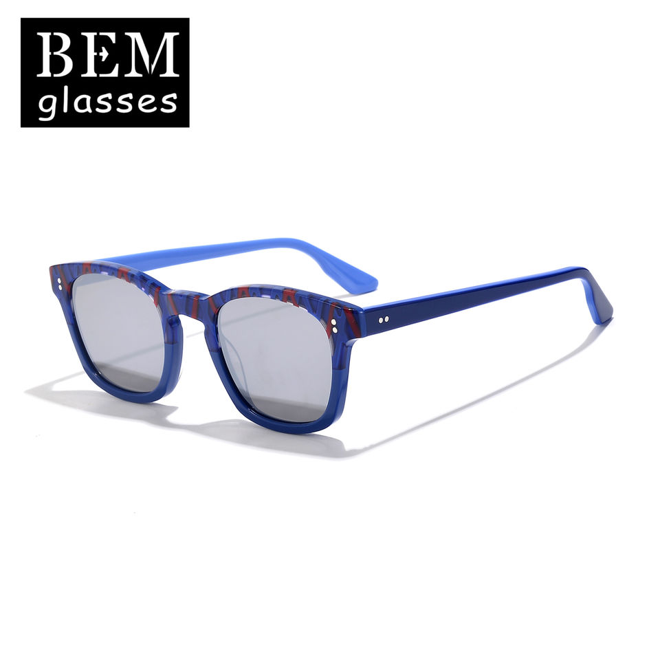 Classic Fashion Rice Nail Blue Red Marble Pattern Square Frame Sunglasses UV400 Protection Unisex Eyewear