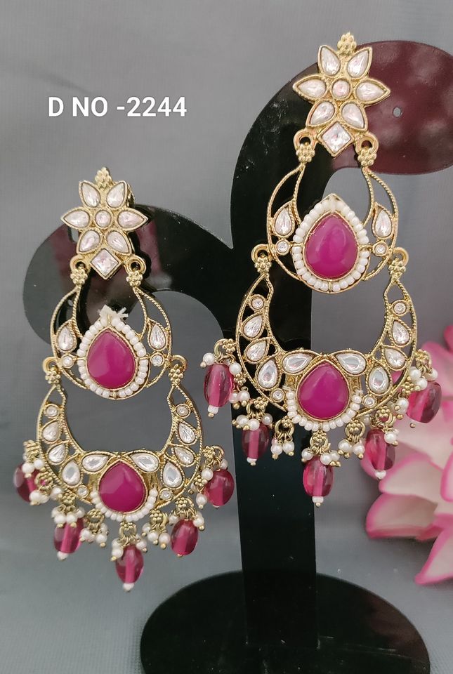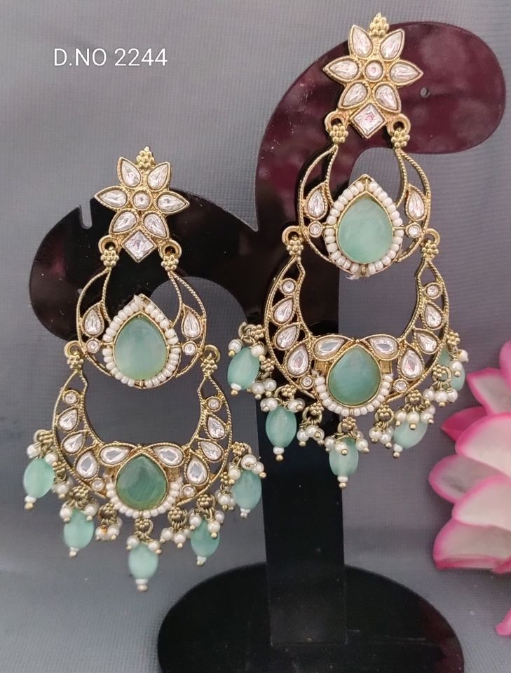 Classic Fashionable Mossiniate Kundan Mehandi Earring Sku -2244 C/1