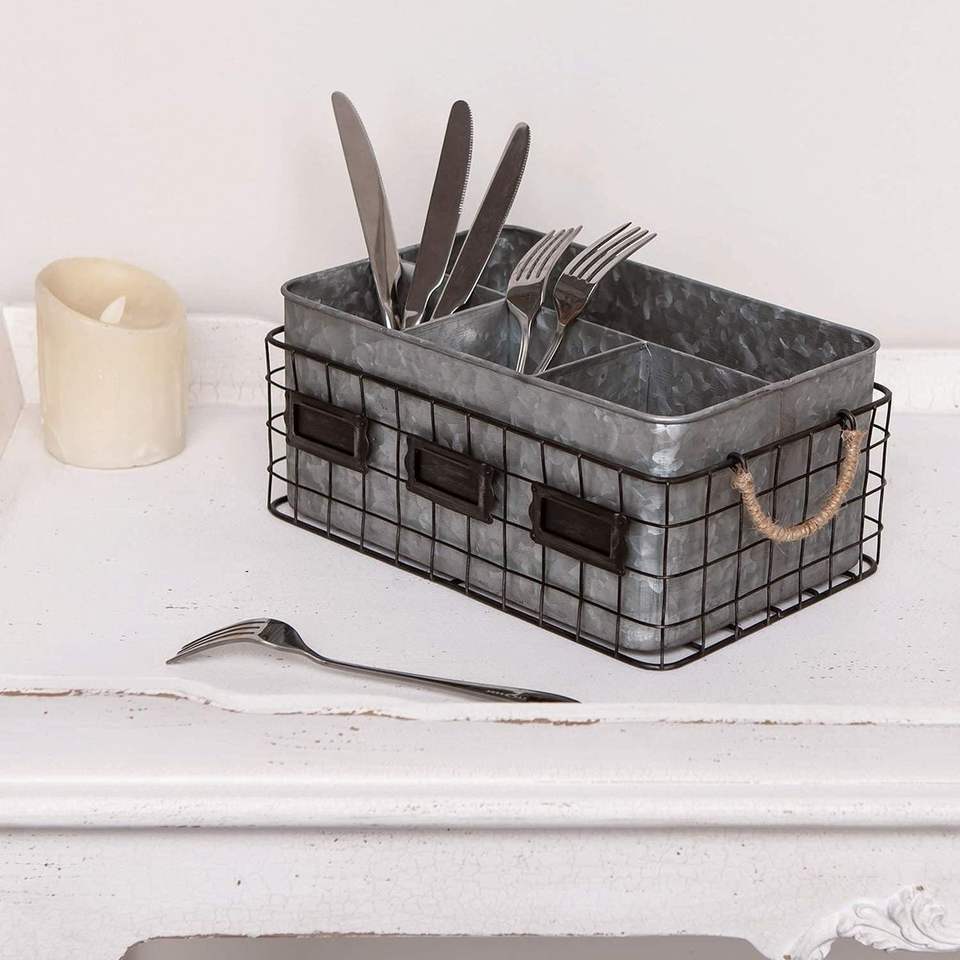 Classic Galvanized Cutlery Holder Timeless Design Practical Utensil Storage For Traditional Kitchens