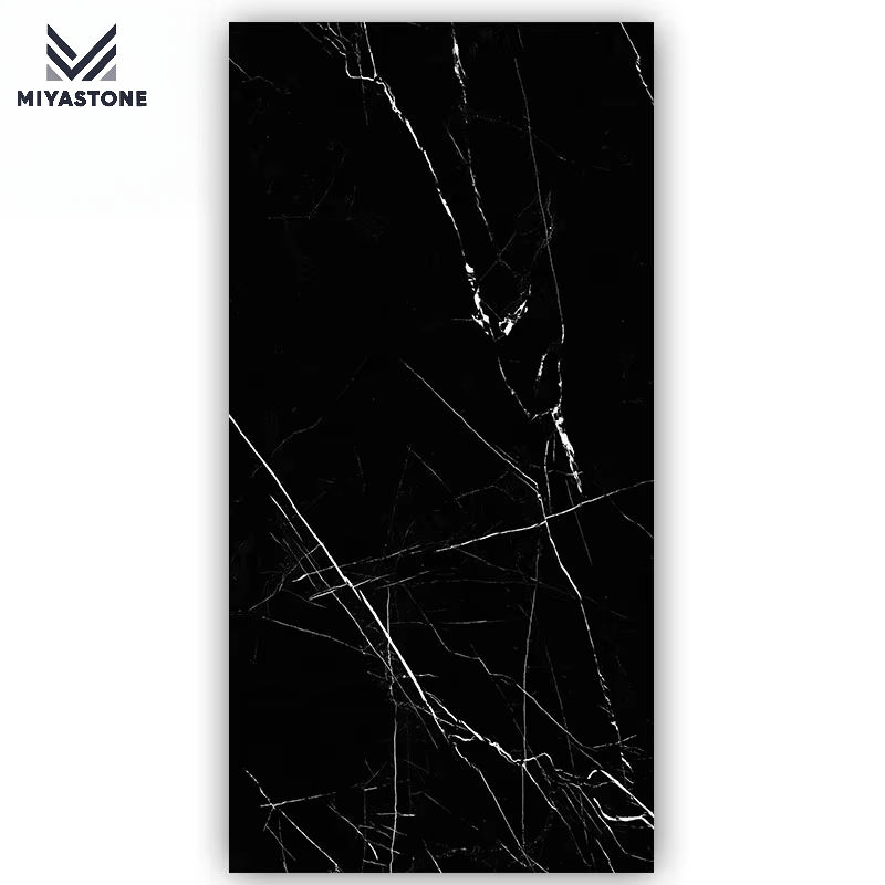 Classic Glossy Artificial White Line Black Stone Patterns Sintered Stone Slab Tiles for Kitchen Countertop